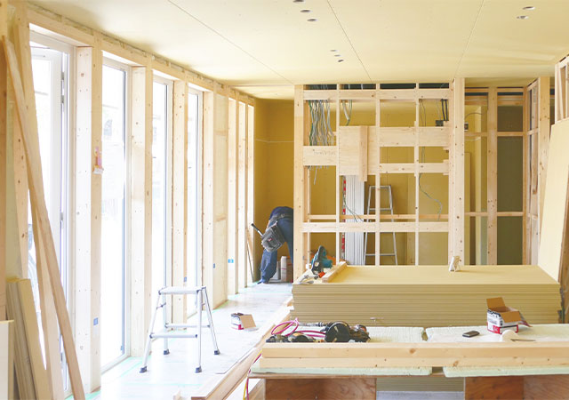 あらゆる場面や工事に対応できるように自社の技術を磨き、専属外注先などの体制を整えています。ちょっとしたお直しや工事から一棟・一軒丸ごとの新築工事まで建築工事・大工工事なら何でもお任せください。